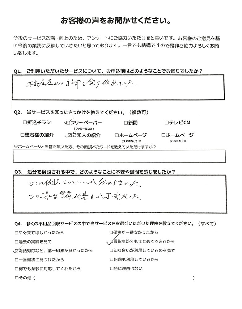 買取り、片付け、解体と、それぞれの業者を手配するのが大変