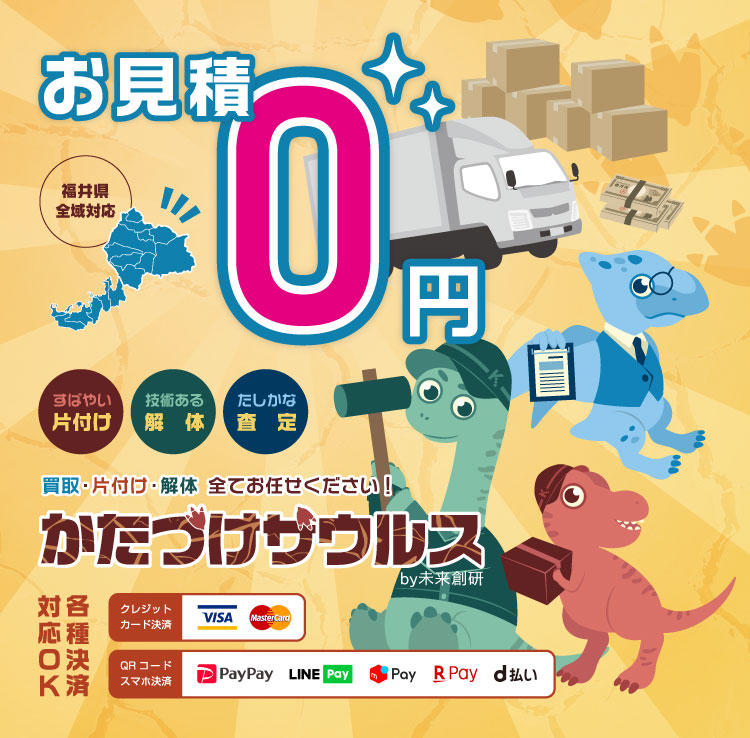 買取できないものや大きいものでも、かたづけザウルスがすぐにお片付けします。まずは、LINEやメールで写真を送って、簡単見積もりを利用してみてください!